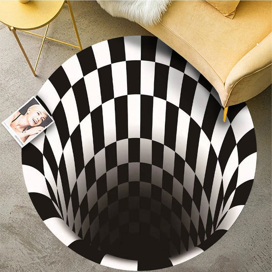 Okrągły dywan z iluzją optyczną 3D | Czarno-biały